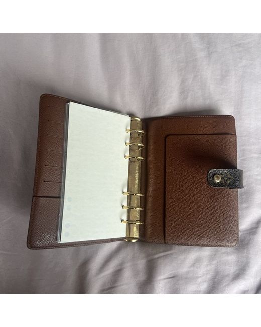 Louis Vuitton diary in immaculate condition with a little bit of tarnishing on the front button can be used with card inside . You can buy the new Louis Vuitton infills in any of the boutiques .