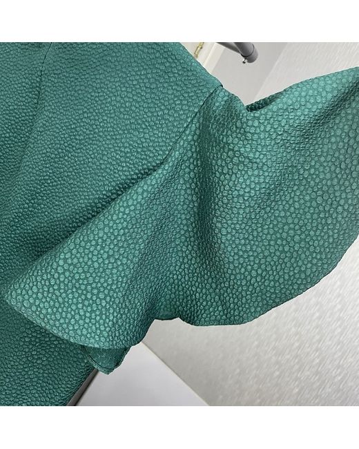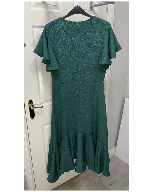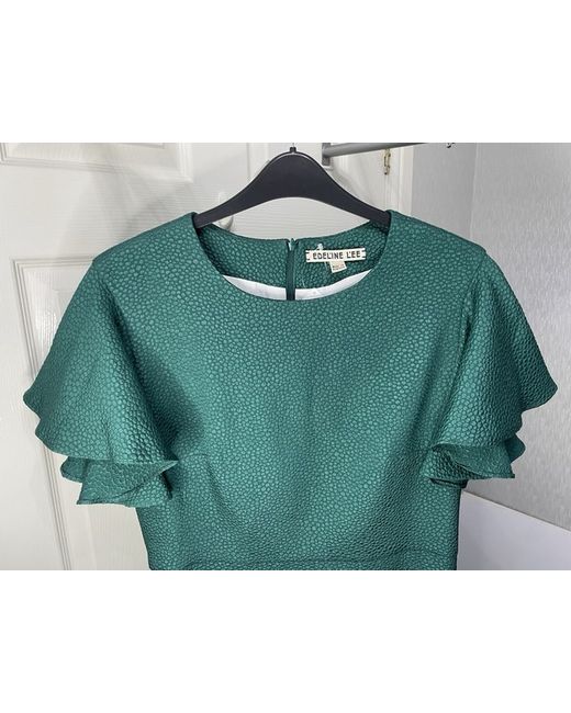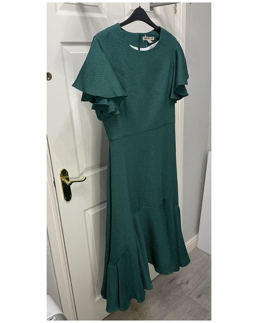Edeline Lee Women’s Designer Dada Malachite Green Flou Bubble Jacquard Midi Dress, Featuring A Curving Deep Ruffle Hem, Round Neckline & Flutter Sleeves. Purchased From Harrods For £1,200 The Dress Has Never Been Worn & Is In Perfect Condition Other Than The Odd Crease. UK Size 14 Bust Size: 38 Inches *Approximately* Length: 45 Inches Materials: 96% Polyester, 4% Elastane