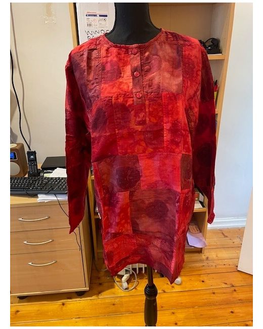 Red Tye Dye Silk Patchwork Casual Baggy Top.