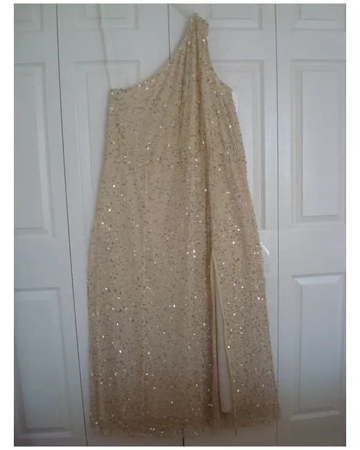 ~ RED HERRING ~. MAXI DRESS. Stunning 1 Shoulder Design Sleeveless Maxi Dress. Neutral Nude Beige Flesh colour. 29" deep split vent approx from over left knee. 100% POLYESTER. Chic Style for a very Special Occasion !