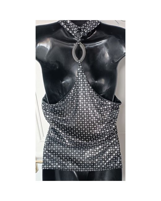 Women's Silver Black Patterned Shiny Halter Keyhole Top 12-14 RRP 20