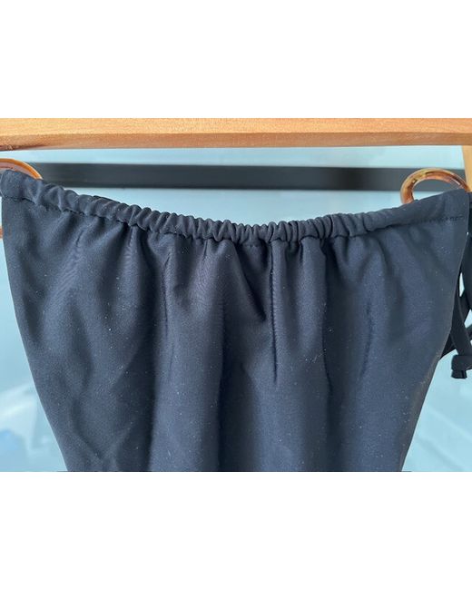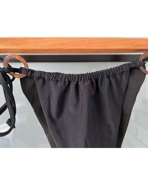 Highrise, side tie, black bikini bottoms.