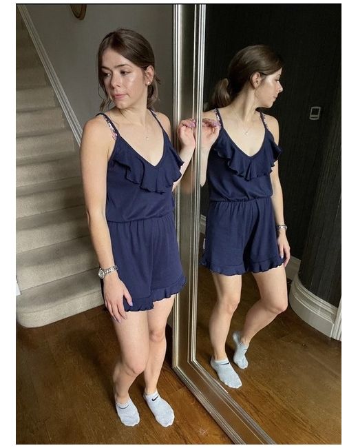 Womens Navy Playsuit Romper Super comfy for lounging with elasticated waist and cute frill detail Size 8/10