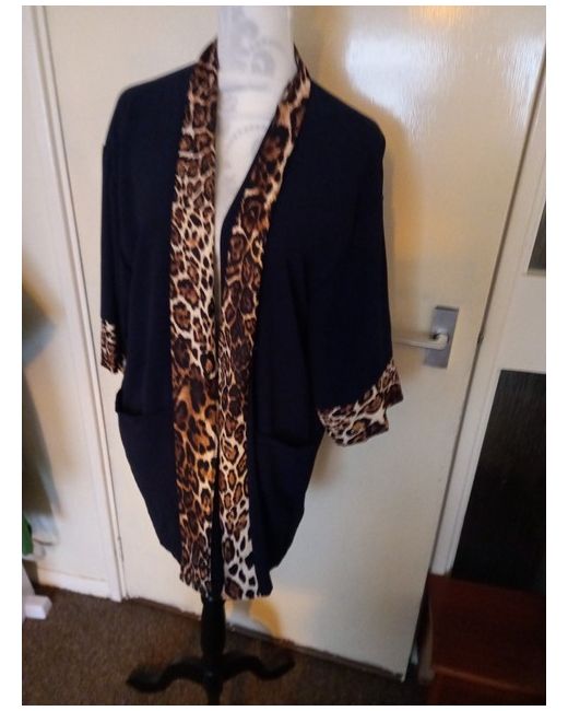 Embrace the unique blend of comfort and style with our NAVY brand open smart jacket, a perfect addition to your wardrobe. The jacket comes in a chic navy and brown leopard print, featuring a versatile one-size fit that caters from size 12 to 22. Crafted from soft viscose, it ensures a comfortable wear that's right for any occasion. Functionality meets fashion with this piece, boasting practical pockets and an open design that adds a touch of ease to your ensemble. Whether you're stepping out for a casual day or dressing up for an evening event, this jacket serves as an ideal layering option that will keep you looking sharp and put together.