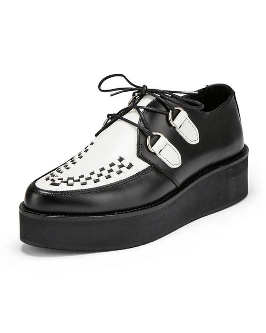 Sole: Creeper out-sole. Classic pointed toe with two D-ring lace up. 2" heel tapering to 1.5" at toe. Style Tip: Wear with skinny jeans and blouse. Import Duty.