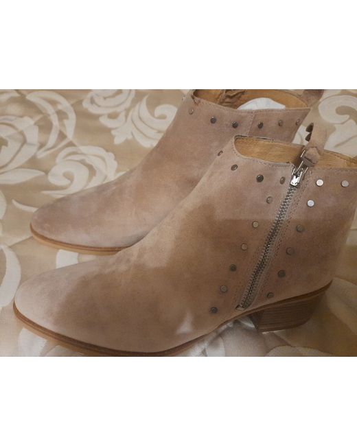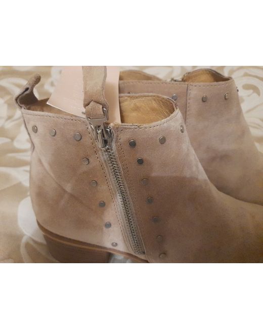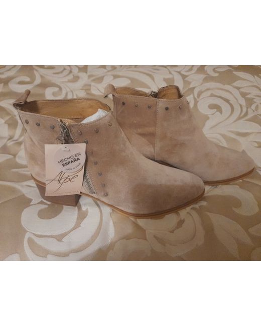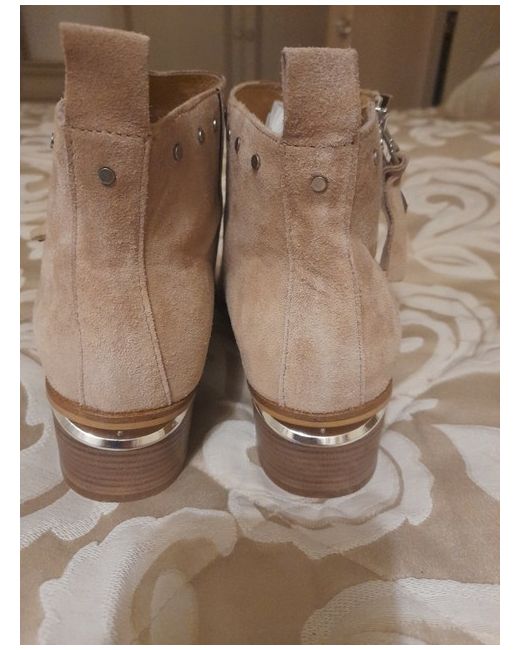 Beautiful light fawn coloured suede boots withde decorative small stud detail. Very beautiful with unique heel design. Extremely comfy. Very good quality.