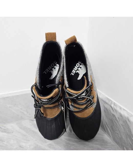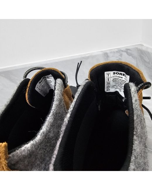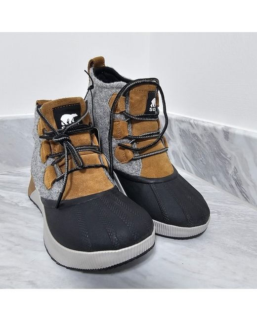 UPPER: Waterproof materials. Full grain leather and suede upper, felt and suede upper or suede with houndstooth textile. Heel pull tab. Lace closure. Textile lining. Waterproof bootie construction.