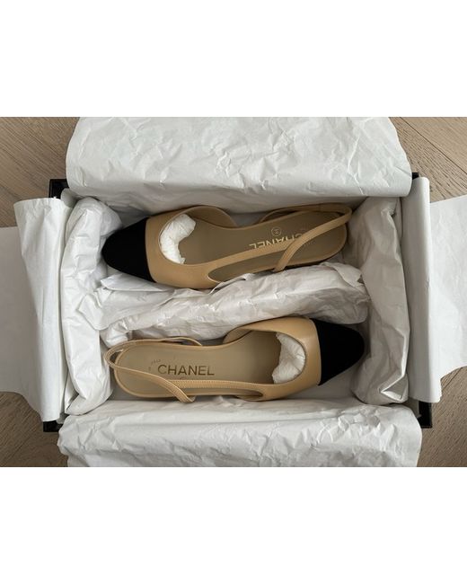 Brand new & unworn Chanel Slingbacks in classic colours Beige & Black. Size EU 37 / UK 4, comes with box, 2 cloth bags and proof of purchase. Selling as unwanted Christmas present. Leather is Goatskin and material is Grosgrain. Original RRP £880.