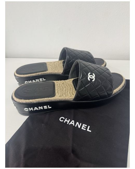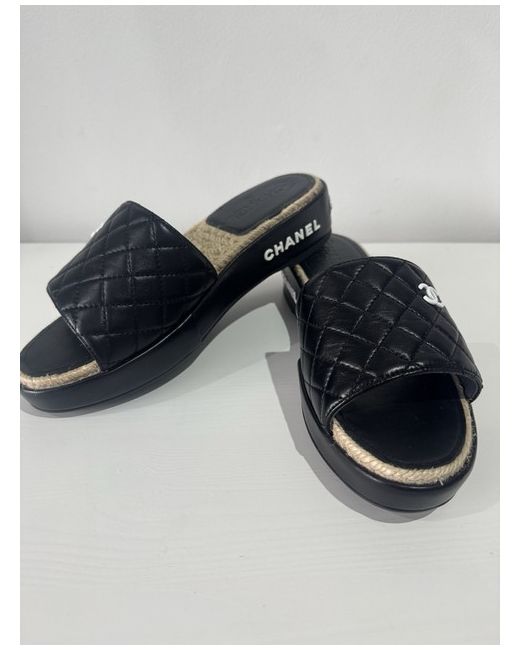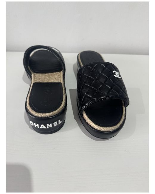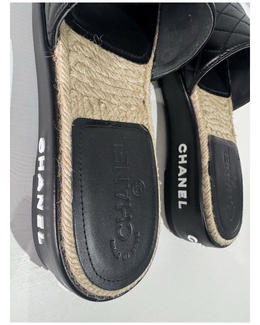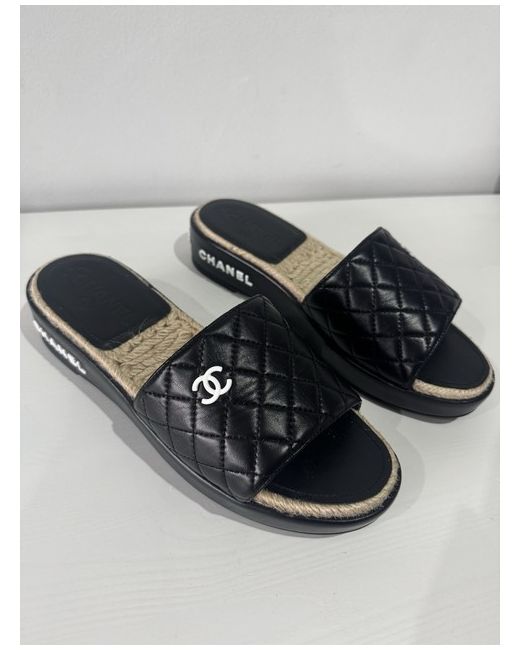 The Chanel Sandals with the iconic Interlocking CC Logo are a stylish addition to any woman's shoe collection. The black colour and logo accents add a touch of luxury to any outfit, making them a versatile and chic choice for any occasion.