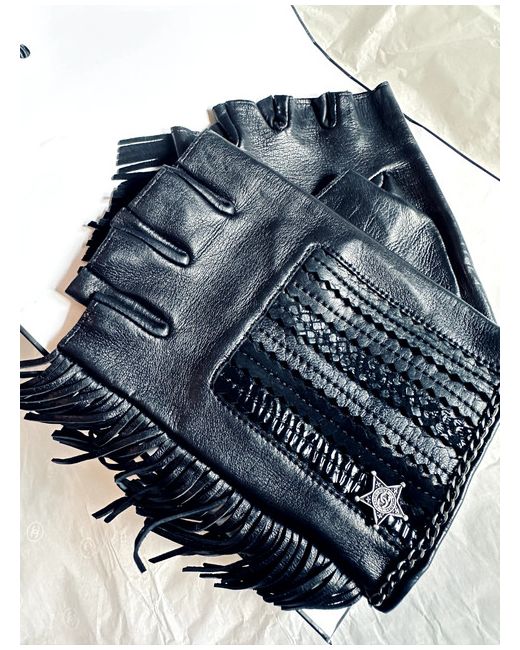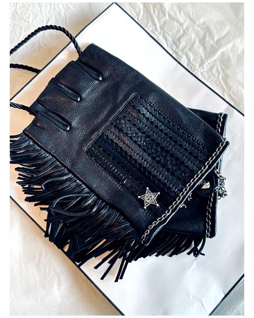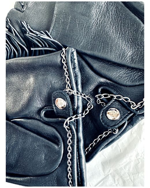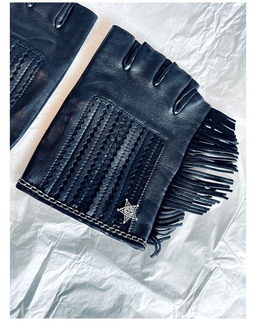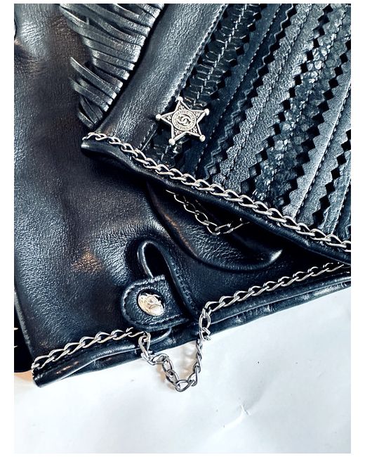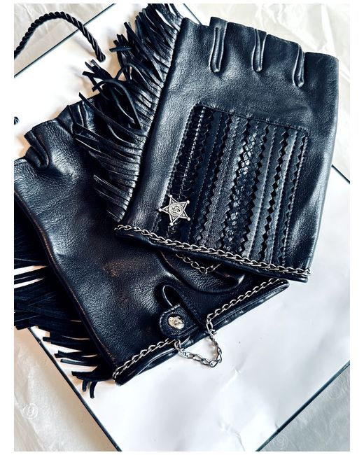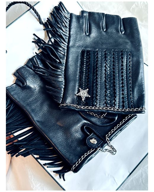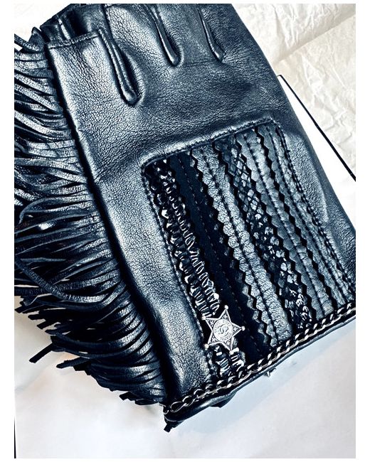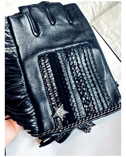 Chanel Soft Lambskin Leather Fringe Fingerless Gloves in size 8.5 in black.