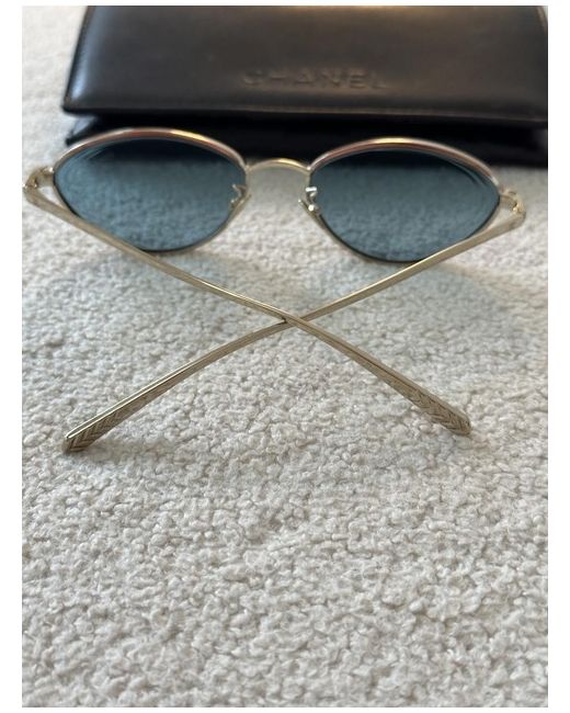 Chanel New sunglasses women. Frame is champagne gold , light blue tinted lenses. Cat eye shape. Comes just with the original case. Smoke and pet free home.