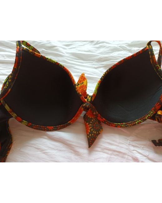Women's Floral Black/Multicoloured Underwire Padded Bandeau Bikini Set 32E/F/XL