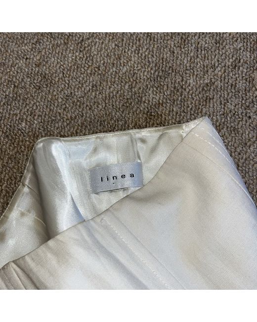 Elevate your wardrobe with this stunning Linea corset top. Perfect for any occasion, this sleeveless top features a hook and eye closure and is made from 100% linen for a comfortable fit. The ivory colour and solid pattern add a touch of elegance to your look, while the size 10 fits regular women's sizes. This corset top is perfect for parties, cocktails, or even formal events. The Linea brand is known for its quality and style, and this top is no exception. Don't miss out on adding this beautiful piece to your collection.