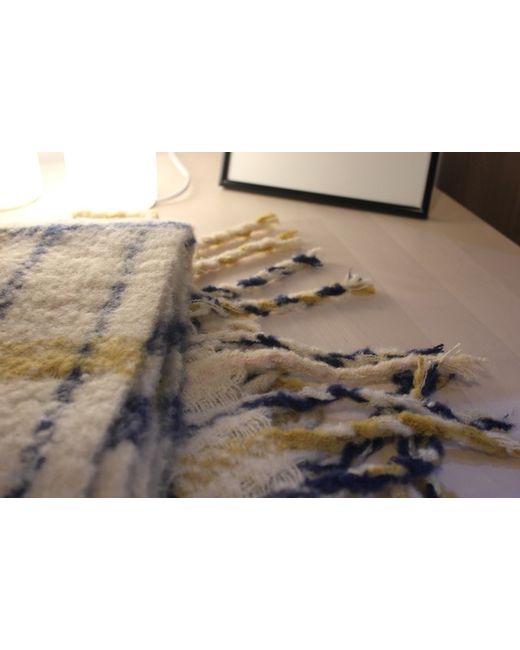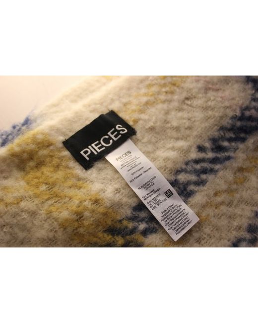 Pieces cream, blue and yellow checked scarf. Washing instructions: Machine wash at 30oC, do not tumble dry.