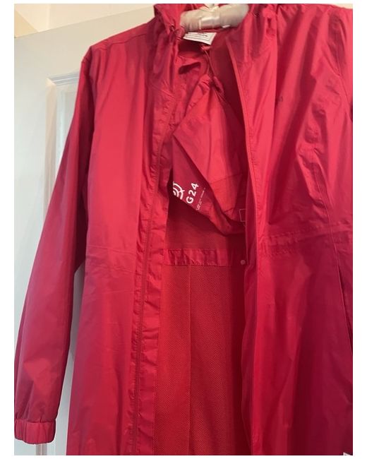 The Tog 24 Women's Jacket in size 20 is a mid-length, red jacket made from polyamide with polyester insulation. This casual jacket features a zip closure, making it easy to put on and take off. It is lightweight, waterproof, packable, and breathable, making it perfect for outdoor activities. The basic jacket style from TOG 24 is designed for women, offering a practical and stylish outerwear option for everyday wear.