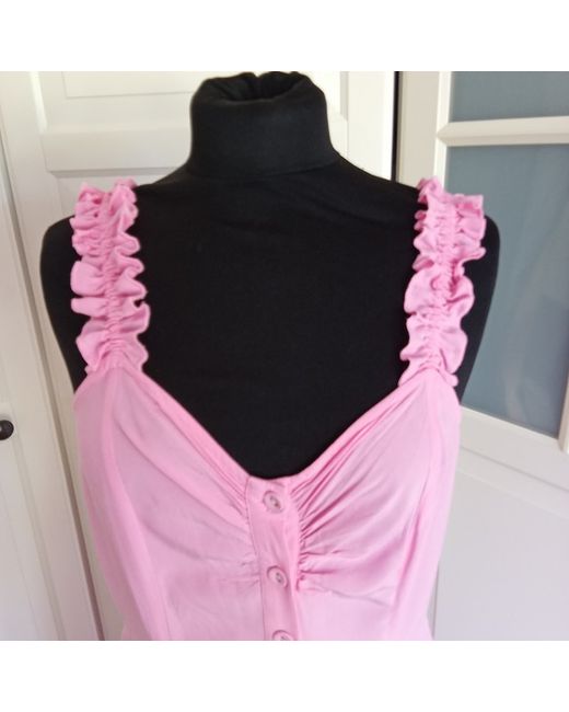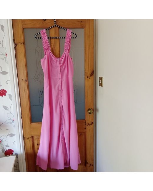 VILA Maxi Button Thro Sundress Feature Elasticated Straps Pink Size 10