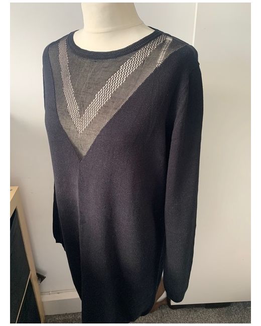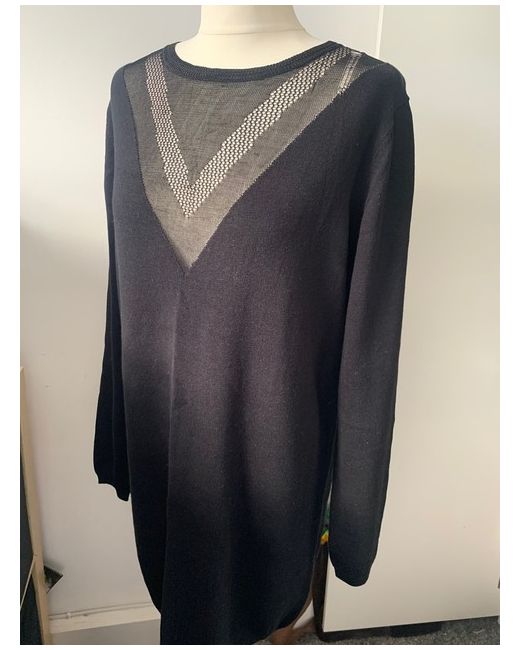 Women's Black Jumper Sweater Shift Dress Pullover Crew Neck Back Detail 10UK/Medium