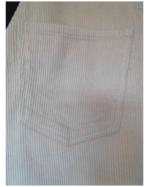 At the front centre you have a silver embossed button that has a colour match with the studs on the pockets. To the left you have a scooped open top pocket and a matching one on the right, this one also has a smaller coin pocket above it.