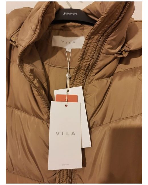 Vila Brown Long Puffer Jacket Size 36.