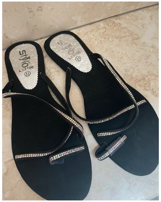 Embrace the essence of summer with these Stylo flat sandals, a perfect blend of comfort and style for your travel adventures. Fashioned in a timeless black hue, these sandals are crafted from premium leather, offering both durability and a luxurious feel. The sleek design is complemented by a comfortable leather lining and a rubber insole that ensures your feet stay cramp-free throughout the day. Available in UK size 7 and equivalent sizes for AU and US shoppers, these sandals are a versatile addition to any wardrobe. Their flat heel style makes them ideal for everyday wear, while the no-pattern feature keeps them elegantly understated. Whether you're strolling the city streets or enjoying a seaside getaway, these sandals are designed to provide effortless ease for every step.