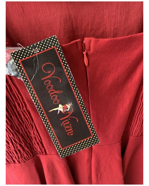 This is a red A-line dress in size 12-14 for women, suitable for the summer and spring seasons. The dress is just above knee length and comes with the brand Voodo Doll. It is brand new with tags attached, making it a fresh addition to one's wardrobe. Perfect for various occasions, this dress is a stylish and vibrant choice for those looking for a versatile piece in their clothing collection.