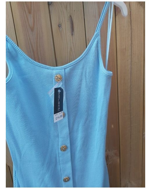 Select blue gold Button split front Midi Summer Dress RRP £14.99 Size 14 Photos are of a size 8