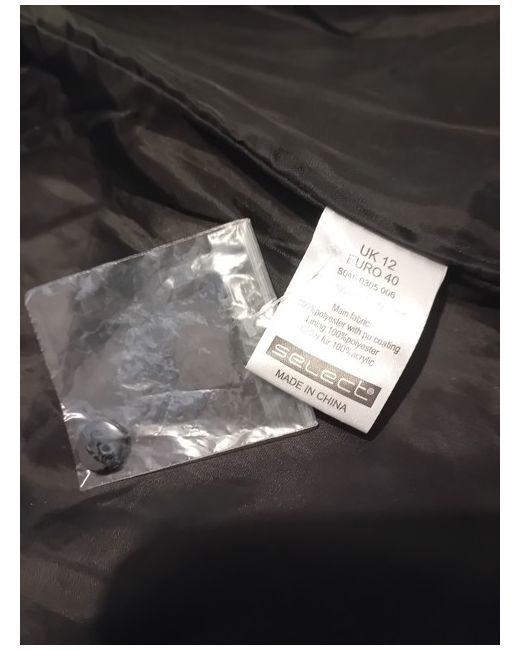 New without tags, this Select Ladies Jacket features a biker style in black polyester with long sleeves. The size is 12, suitable for regular size women.