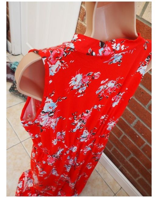 Women's Floral Red High Neck Sleeveless Splits Sides Jersey Fit Long Dress 16 Xl