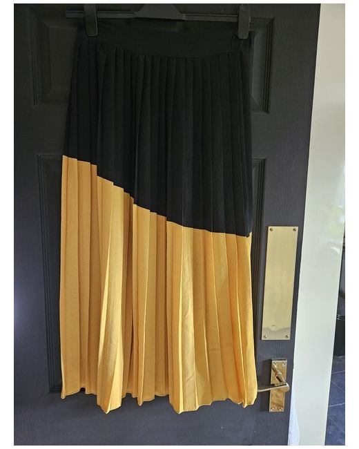 Gorgeous colours of black with mustard yellow, elasticated waist. 34 inches waist to bottom
