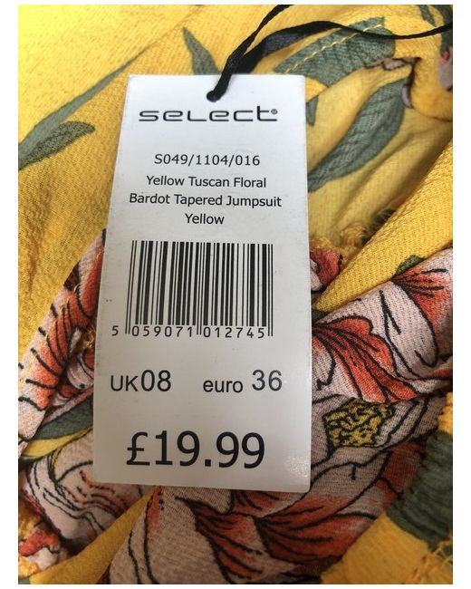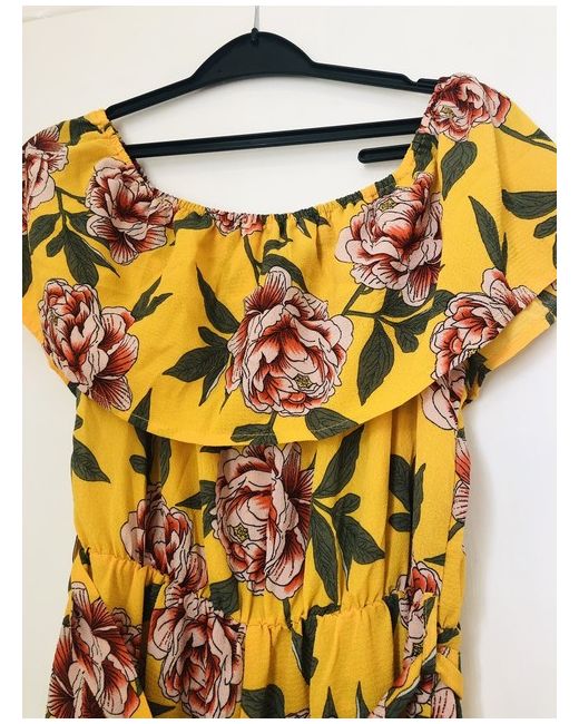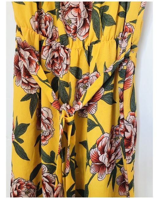 Floral Jumpsuit Size 8. Off the shoulder with elasticated frilled top. Tie belt at waist which is elasticated. Cost £19.99