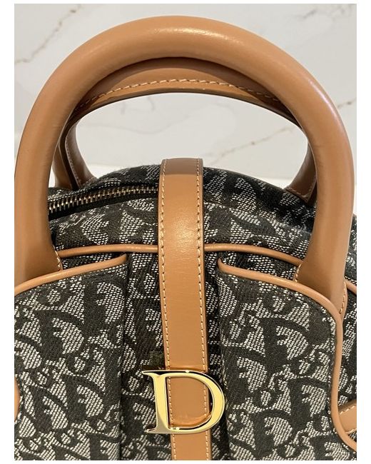 Vintage Dior Small Double Saddle Bag in Oblique Jacquard with calf skin accents. With original dust bag and authenticity card from Harrods. With a zip closure the Dior D secures with a velcro fastening. Two inside pockets one with a zip and the other with a popper. One back slip pocket. Approx 28cmW x 26cmH including handles. I have found one small mark that I have clearly identified - see photos. It can only been seen clearly with bright light and magnification. The “D” has a few tiny lines across it from being stored. Matching purse available in a separate listing. Please note that this is a genuine unused vintage item and there maybe micro imperfections from being stored. Any more or detailed photos available on request. Please ask any questions