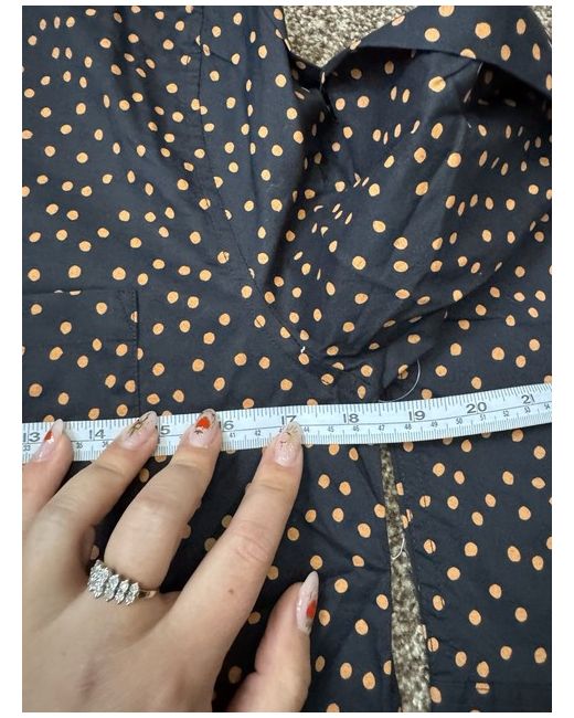 Amazon Essentials button-up shirt in a classic fit with a polka dot pattern. This shirt features a collared neckline, long sleeves with classic/fitted cuffs, chest pocket, rounded hemline and a button closure. It is made of 100% cotton material. The multicoloured design is perfect for both casual and business occasions. Size XS - please see some measurements in the pictures. New with tags.