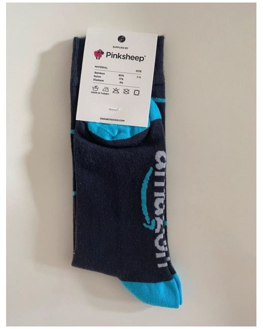 These brand new Amazon logo socks are designed for women in a size 7-11. The blue socks feature the Amazon logo and are a stylish addition to any outfit. Perfect for adding a touch of fun and personality to your look, these socks are a must-have for Amazon fans or anyone looking for a unique and trendy accessory.