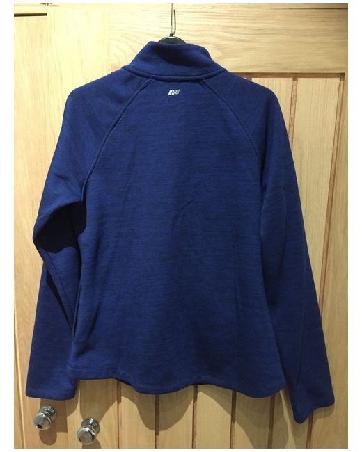Ladies Amazon Essentials Blue zip top size M. Lovely warm top for walking or casual wear. Pockets in side seam. Fluorescent symbol on back of neck. Unwanted gift as too small.
