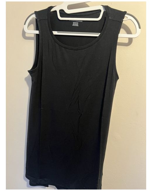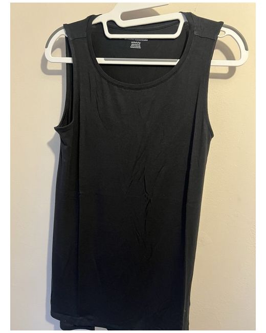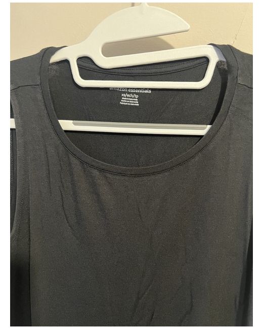 This black tank top from Amazon Essentials is a must-have for any wardrobe. It features a solid pattern, sleeveless design, and a round neckline with a pullover closure. The top is made of a lightweight and stretchy viscose and elastane jersey fabric, making it comfortable to wear in any casual occasion. The tank top comes in a regular fit and size XS, with no character or vintage features. It is perfect for a classic and timeless look. This item is ideal for women who value comfort and style.