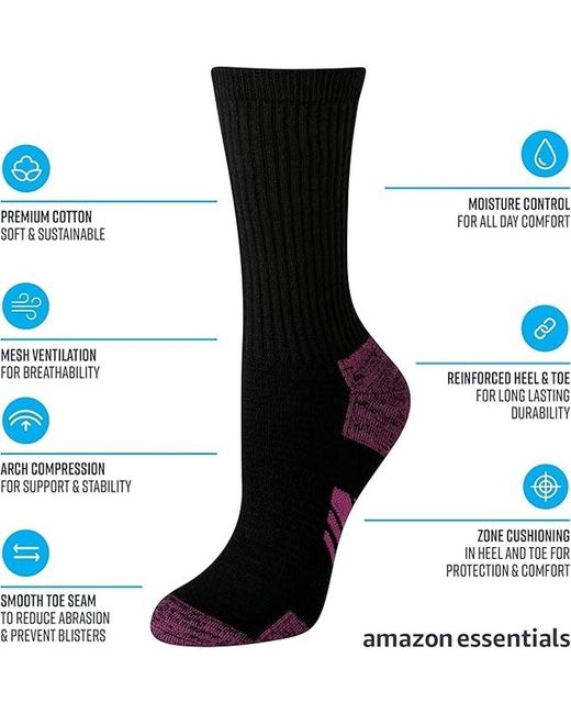 MATERIAL: Amazon Essentials socks are made from high-quality and durable materials. These socks are a cotton-poly blend with elastane for superior fit and shape retention. DESIGN: These performance socks are the perfect athletic socks and are great for anyone who prefers a sock with more cushion and support.