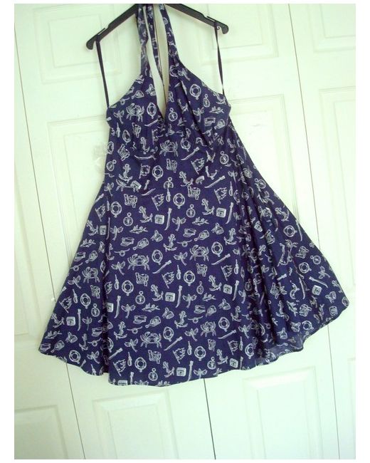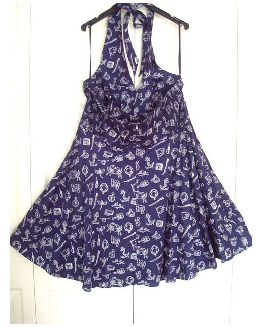 Women's Dark Blue Rockabilly SWING 60s HALTERNECK Stretch Side DRESS Navy 2XL BNWT