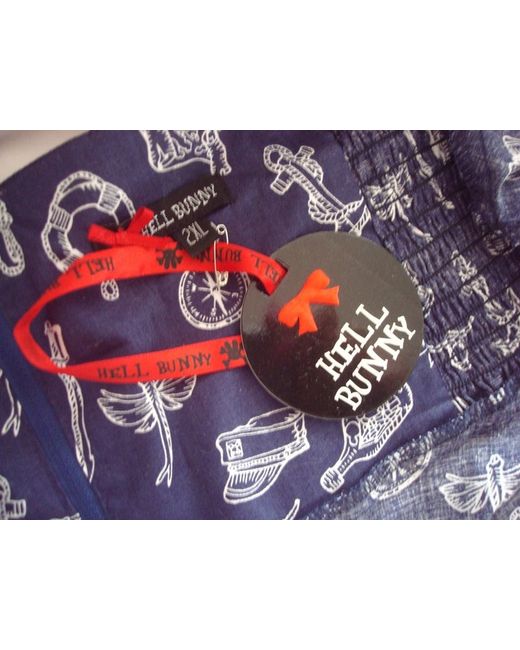 S/LESS HALTERNECK. Sassy 50's Rockabilly Style Fit'n'Flare Sun Dress. ~ HELL BUNNY ~. Size 2XL (approx to fit UK 18-20). NAVY & WHITE. Shirring Elastic Panels each side waist for a perfect fit. FIT'n'FLARE SUN DRESS.