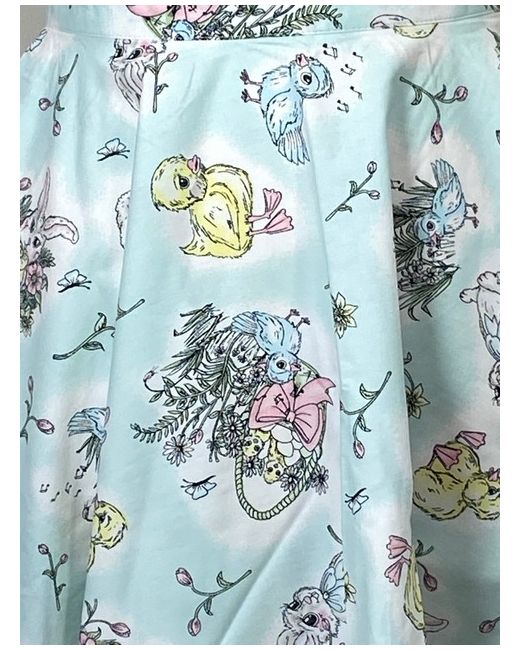 Women's Blue Skirt Swing Full XS Easter Chicks Vintage Rockabilly Cotton
