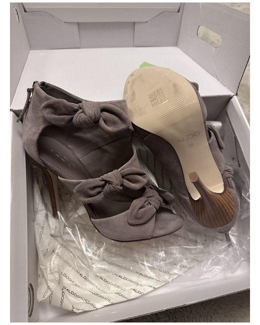 For sale a beautiful pair of Aldo suede taupe ankle boots with zip backs and with bow cut outs, never been worn just tried on, comes with their box