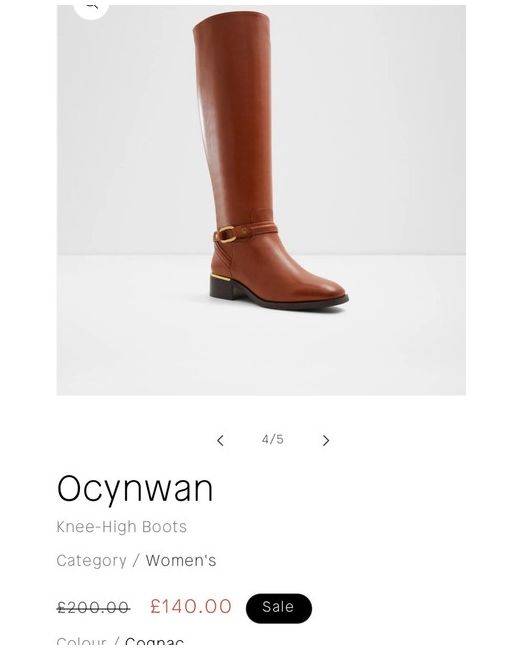 Aldo Knee-High Boots , cognac colour, size uk 5 / eu 38 Brand New RRP £200 Please take a close look at the picture. One small pin is missing, but it’s not noticeable and does not affect the full functionality of the boots.