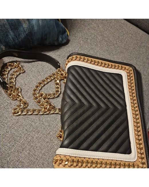 Aldo bag black with beige & white design & chevron design. Strap is a gold chain. Beautiful bag.