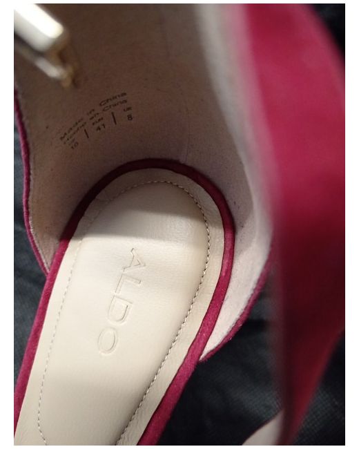 Elevate your fashion game with these stunning Aldo Women Reddish Heels. The open-toe design adds a touch of class and style to any outfit, while the high heel provides the perfect balance of elegance and comfort. The suede upper material and strappy style make these heels stand out, making them a must-have for any fashion-conscious woman. These heels are available in UK size 8, US size 10, and EU size 41, and come in a beautiful shade of red. They are new with box and have not been customised. Whether you're dressing up for a special event or simply want to add some flair to your everyday look, these Aldo Women Reddish Heels are the perfect choice.