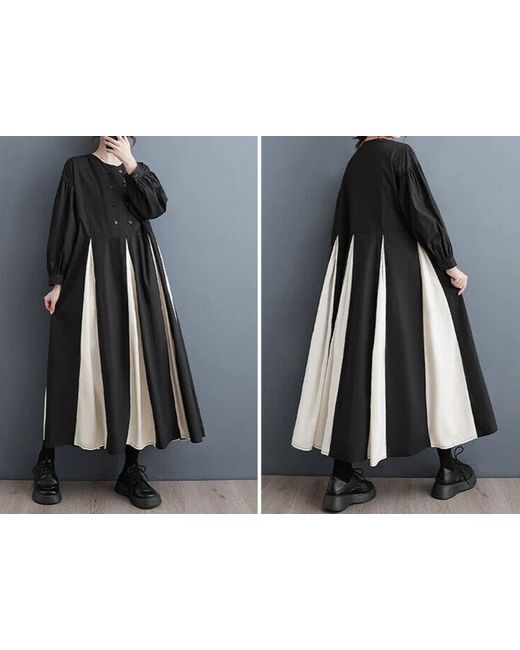 Ladies Urban Arty Black Design Designer Loose Floaty Midi Shirt Dress 12