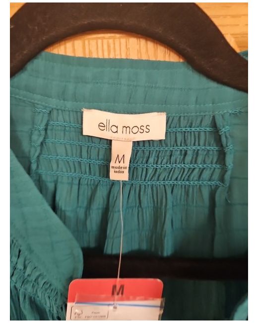 This gorgeous Ella Moss blouse in a beautiful shade of green is perfect for any woman looking to add a touch of elegance to her wardrobe. With long sleeves and a comfortable regular fit, this blouse is perfect for any occasion. The blouse is made from high-quality materials and is designed to last. The blouse is perfect for women of all sizes, with a medium size that will fit most. The stunning green colour is sure to turn heads, and the blouse can be paired with almost anything for a stylish look. So why wait? Add this Ella Moss blouse to your collection today and take your wardrobe to the next level!