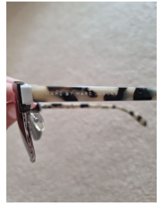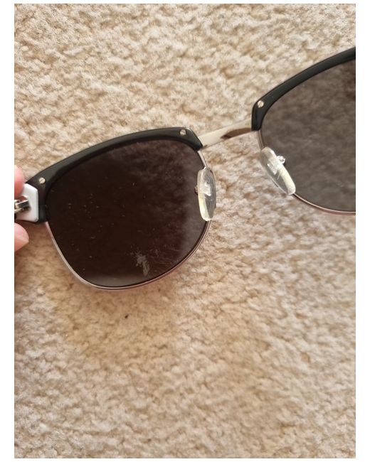 There is a scratch on the left glass, please see the pictures. I can't see the scratch if I am wearing the glasses. Also, it is not noticeable from outside.