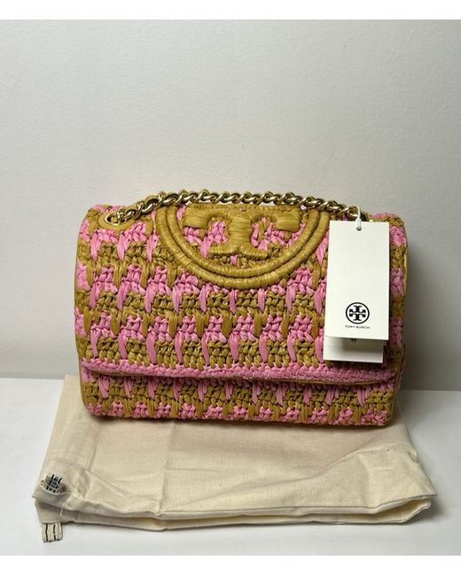 Pink and brown ‘Fleming Small’ shoulder bag from Tory Burch. Waist: 60cm. Bust: 85cm. Height: 176cm.