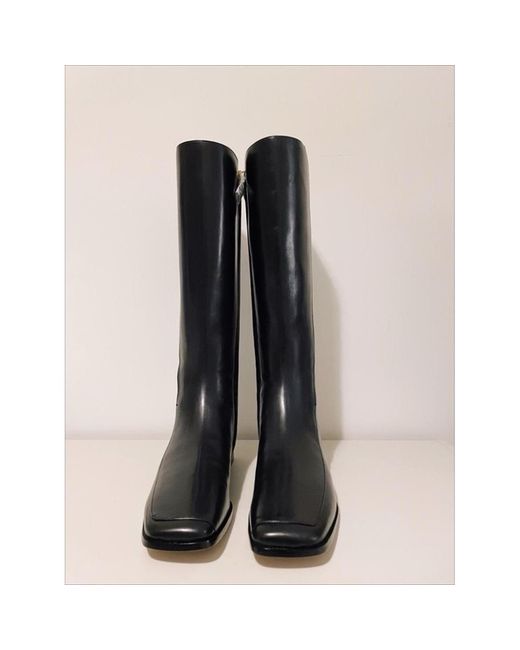 Tory Burch black knee high leather riding boots with tan leather interior. Rounded square toe with stitched detail. Flat boot. Both of Tory Burch gold T logos on the zips have fallen off but this won’t affect the wear. The leather is in really great condition.
