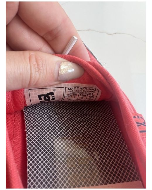 DC pink canvas trainers Brand new with tags, never been worn! Slight discolour on the top, as in pictures due to storage. Smoke free home.