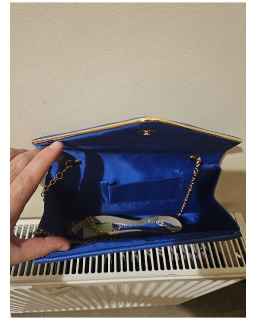 Elevate your style with this stunning KOKO handbag, perfect for any casual or formal occasion. Crafted from high-quality faux leather in a beautiful blu exterior, this clutch-style bag features a silver handle/strap and blue hardware, adding a touch of sophistication to your look. The interior is lined with a luxurious gold colour, providing a soft and elegant surface for your belongings. This small-sized handbag is a designer piece that will complement any outfit, making it the perfect addition to your collection.